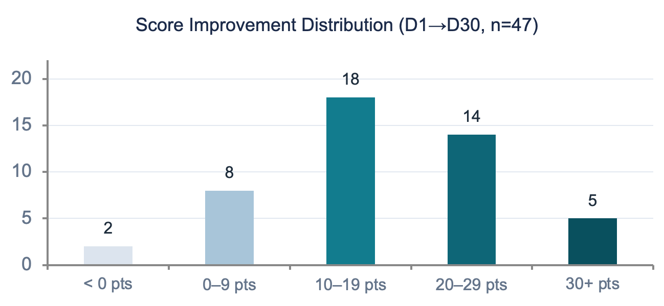 Avg Score Δ (D1→D30)